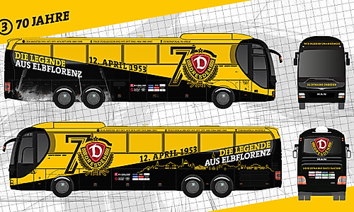 Die achte Jubiläumswoche anlässlich des 70. Vereinsgeburtstages unserer Sportgemeinschaft bestand aus zwei Projekten, in denen alle Fans der SGD aufgerufen waren, ihre Kreativität unter Beweis zu stellen. Während der Schalgestaltungswettbewerb am Mittwoch, dem 26. April 2023, zu Ende gegangen ist und gerade ausgewertet wird, wurden die zahlreich eingesendeten Ideen für das Design des neuen Mannschaftsbusses bereits grafisch aufgearbeitet.