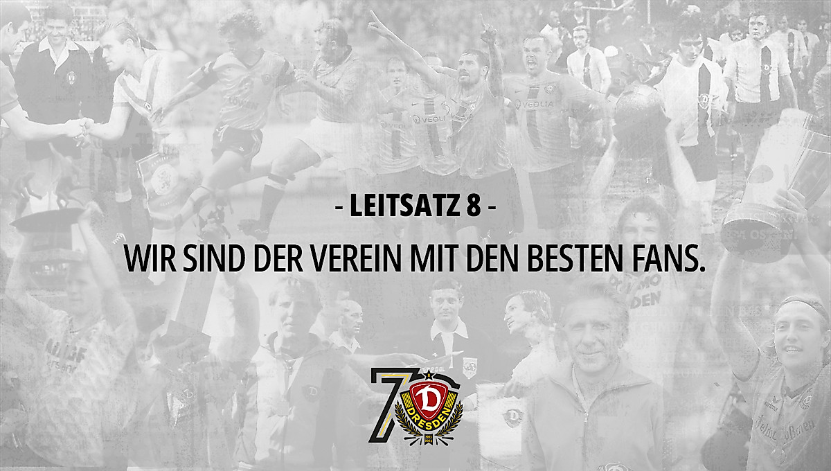 Dynamo wird 70 und widmet die letzten zwölf Wochen vor dem Jubiläum am 12. April jeweils einem Leitsatz unserer SGD. Unter dem Motto „Wir sind der Verein mit den besten Fans“ haben alle Schwarz-Gelben die Möglichkeit, ihre Ideen für einen dynamischen Auftritt der Sportgemeinschaft einzubringen.