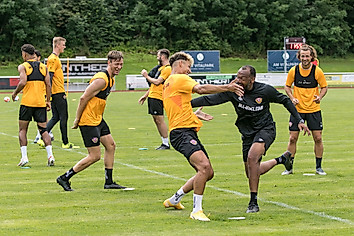 Am siebten Tag im Sommertrainingslager im Eichsfeld waren die Zweitliga-Profis bereits vor dem Frühstück aktiv, absolvierten zudem zwei intensive Trainingseinheiten und durften mit Neuzugang Michael Sollbauer ein neues Gesicht im Mannschaftsverbund begrüßen. Aber der Reihe nach.Schon um 8.30 Uhr traf sich der schwarz-gelbe Tross, aufgeteilt in zwei Gruppen, auf „nüchternen“ Magen zum Frühsport.…