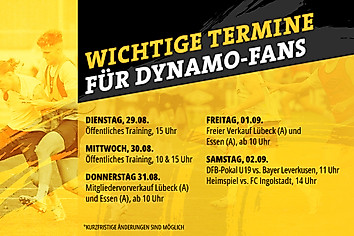 Am Samstag, dem 2. September 2023, gibt es Fußball satt für alle Dynamo-Fans. Der Deutsche-Fußball-Bund (DFB) hat die erste Runde des A-Junioren-DFB-Pokals ausgelost und terminiert. Dementsprechend wird die U19, trainiert von Willi Weiße, an diesem Tag um 11 Uhr in der AOK PLUS Walter-Fritzsch-Akademie auf Bayer 04 Leverkusen treffen. Drei Stunden später steht für die Drittligaprofis im…
