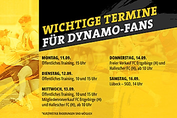 Zweimal Derby, zweimal Flutlicht, zweimal Rudolf-Harbig-Stadion: Uns steht ein heißer Herbst bevor, liebe Dynamo-Fans! Am Sonntagabend, dem 24. September um 19.30 Uhr ist zunächst der FC Erzgebirge in der Landeshauptstadt zu Gast. Am Mittwoch, dem 4. Oktober, geht es ab 19 Uhr gegen den Halleschen FC. Der Vorverkauf für beide Spiele beginnt am Mittwoch, dem 13. September, in den üblichen zwei…