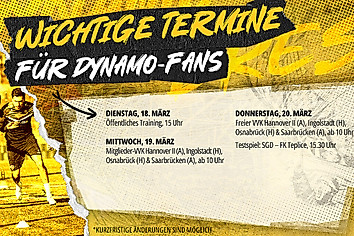 Am Mittwoch, dem 19. März, starten die Vorverkäufe für die Heimspiele gegen den FC Ingolstadt 04 (9. April, Anpfiff 19 Uhr) und den VfL Osnabrück (12. April, Anpfiff 14 Uhr) sowie die Auswärtsspiele gegen die Zweitvertretung von Hannover 96 (4. April, Anpfiff 19 Uhr) und den 1. FC Saarbrücken (20. April, Anpfiff 13.30 Uhr).