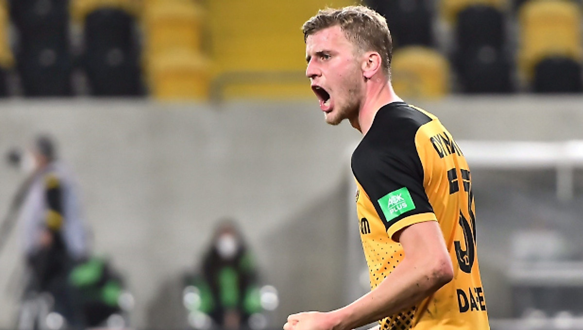 Kurz vor dem Halbzeitpfiff nahm Stoppelkamp einen Aufsetzer aus der zweiten Reihe volley, zielte aber deutlich über den Dynamo-Kasten (44.), sodass es mit dem torlosen Remis in die Pause ging.