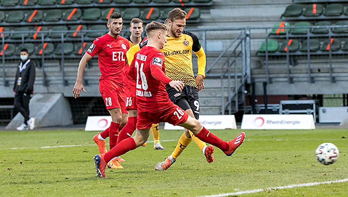 Die SG Dynamo Dresden gewinnt das letzte Drittliga-Spiel des Jahres 2020 am 17. Spieltag beim FC Viktoria Köln mit 4:2 (0:1).