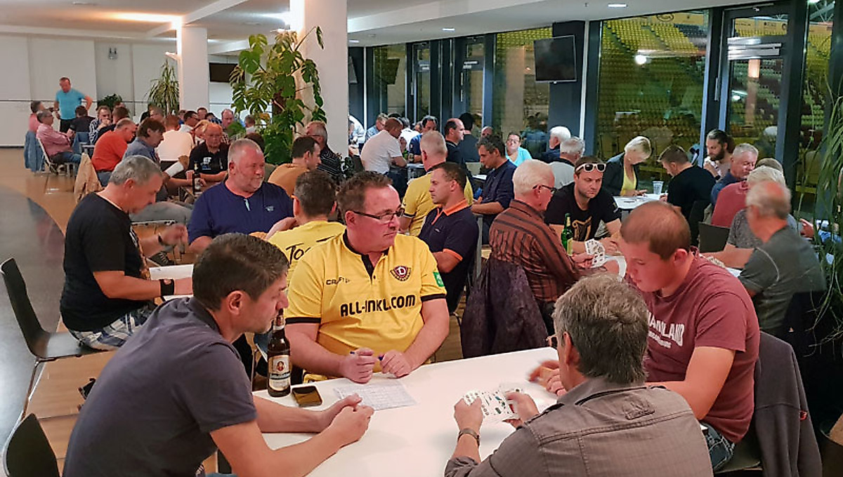 Am Freitag, dem 27. September, findet das 5. Dynamo-Skatturnier statt.Dazu lädt die Fangemeinschaft Dynamo e.V. alle Fans der SGD, Vereinsmitglieder und Skatfreunde wieder in den VIP-Raum des Rudolf-Harbig-Stadions ein.