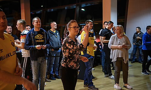 Eröffnet worden war die Veranstaltung gegen 15 Uhr von Michael Bürger, Vize-Präsident der SGD, und Harry Wagner, der wie wie bereits in der Vergangenheit die Turnierleitung übernahm. Neben ihren eigenen Duellen konnten die Spielerinnen und Spieler auch mehrere Showmatches hautnah verfolgen. Während Bürger gegen den ehemaligen Dynamo-Stürmer (151 Spiele für die SGD) und heutigen Nachwuchstrainer Lars Jungnickel antrat, zeigten Claudio Kammerknecht und Max Kulke in Partien gegen zufällig ausgeloste Vereinsmitglieder ihr Können an der Dartscheibe.