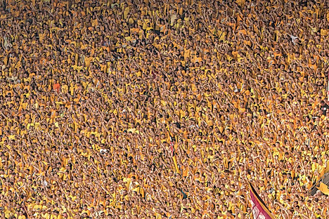Mit der Aktion wollen die Anhänger ein geschlossenes optisches Zeichen setzen, um ihren Verein auf dem Weg in die zweite Runde des Wettbewerbs zu unterstützen.