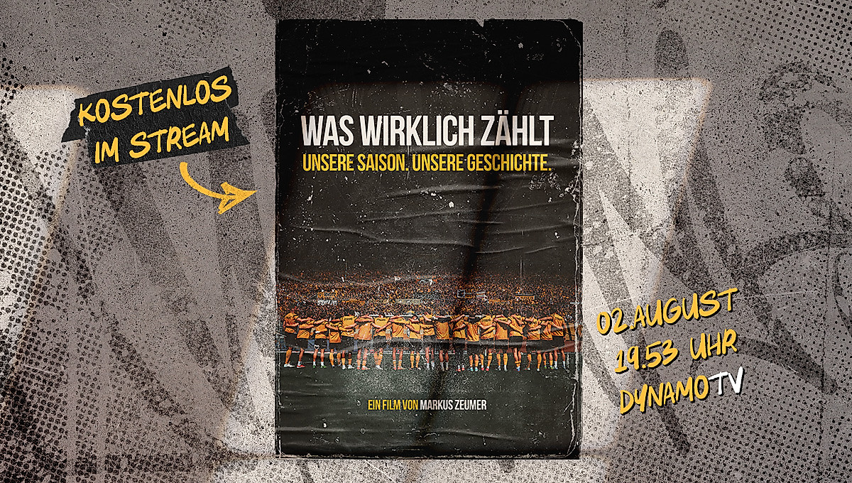 Die Kino-Premiere am vergangenen Mittwoch setzte große Emotionen bei Fans und Mannschaft frei, ab Samstag ist der Aufstiegsfilm „Was wirklich zählt“ nun auch kostenfrei bei DynamoTV zu sehen. Der Startschuss erfolgt 19.53 Uhr.