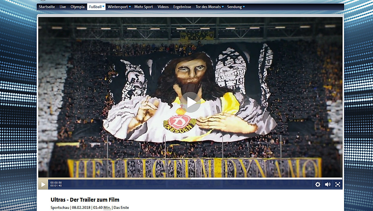 Am Sonntag, dem 11.02., um 17.15 Uhr, sendet Das Erste eine 45-minütige Doku über Ultras. In dem Film von Alexander Cierpka und Tom Häussler kommen Ultragruppen unterschiedlicher Vereine zu Wort, unter anderem von Dynamo Dresden, VfB Stuttgart oder 1. FC Magdeburg.