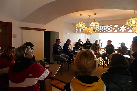 Vorher aber ging es zur besagten ersten Einheit der Profimannschaft. Dort traf die Fangruppe auf die restlichen mitgereisten Anhänger – insgesamt über 50 Dynamos begleiten die SGD diesmal. Jahr für Jahr ist dieser Moment immer wieder von großer Wiedersehensfreude geprägt, man kennt sich untereinander schließlich teilweise bereits jahrelang.