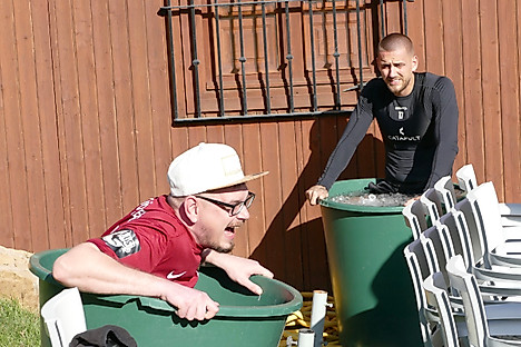 Nach einem kurzen Plausch mit Cheftrainer Markus Kauczinski – „Wir haben ihm unsere besten Wünsche mit auf den Weg gegeben“, so Teichmann – stand vor dem ersten Teamtraining um 16 Uhr noch ein wichtiger Punkt auf dem Programm: Vorräte auffüllen. Denn ein reingefeierter Geburtstag muss schließlich auch wieder rausgefeiert werden!