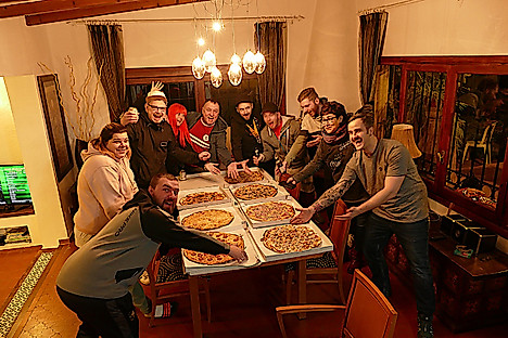 Frisch gestärkt machte sich die Bande um Teichmann und das Geburtstagskind am frühen Mittag auf den Weg in Richtung Mannschaftshotel, wo die Dynamo-Fans die ankommende Zweitliga-Mannschaft der SGD in Empfang nahmen.