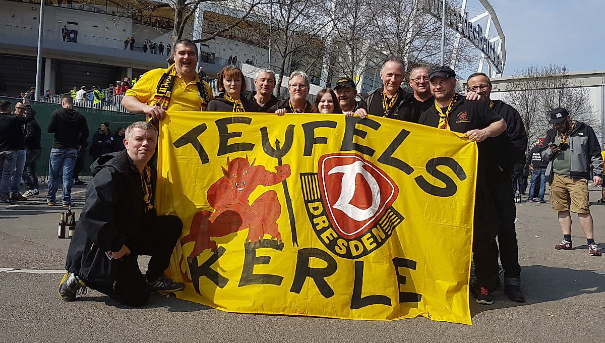 {media-right}Vor Heimspielen der SGD ist die Gruppe derweil auf ihrem Stammplatz in „Susi‘s Sportsbar“ anzutreffen. Im Rudolf-Harbig-Stadion teilt man sich dann seit einiger Zeit in „Sitzer“ und „Steher“. Letztere sind ganz oben im K1 zu finden und unschwer an ihrer großen „Teufelskerle“-Schwenkfahne zu erkennen.