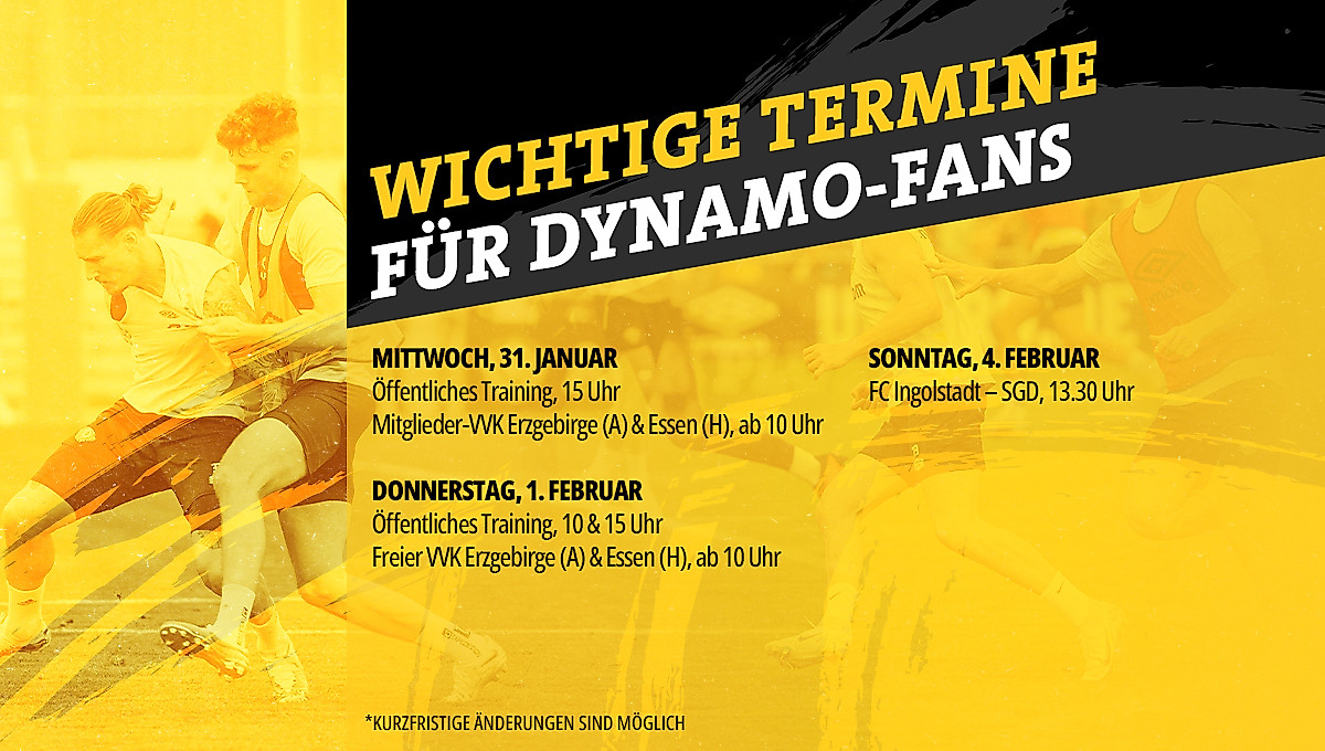 Ebenfalls ab Mittwoch gehen die Tickets für die Partien im Erzgebirge und gegen Rot-Weiss Essen in den Vorverkauf. Zunächst haben Mitglieder exklusiven Zugriff auf die Karten, ab Donnerstag gehen eventuelle Resttickets in den freien Verkauf.