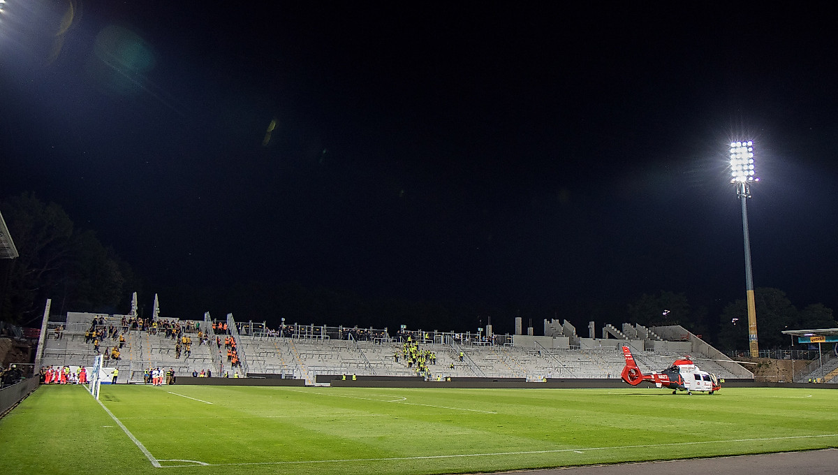 Rettungseinsatz am Gästeblock in Darmstadt nach Abpfiff