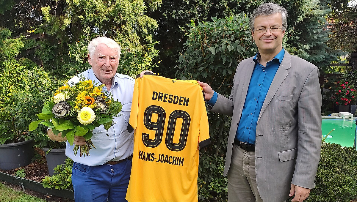 Am Dienstag stattete Vizepräsident Dr. Michael Bürger dem langjährigen Mitglied Hans-Joachim einen Überraschungsbesuch in Dresden-Trachau ab. Im Namen der Sportgemeinschaft gratulierte er dem siebtältesten Mitglied der SGD zum 90. Geburtstag und übergab einen Blumenstrauß sowie ebenfalls ein signiertes Trikot. Das glückliche „Geburtstagskind“ ließ es sich nicht nehmen, die eine oder andere Anekdote zu erzählen und dem Präsidiumsmitglied zahlreiche Fragen zu stellen.