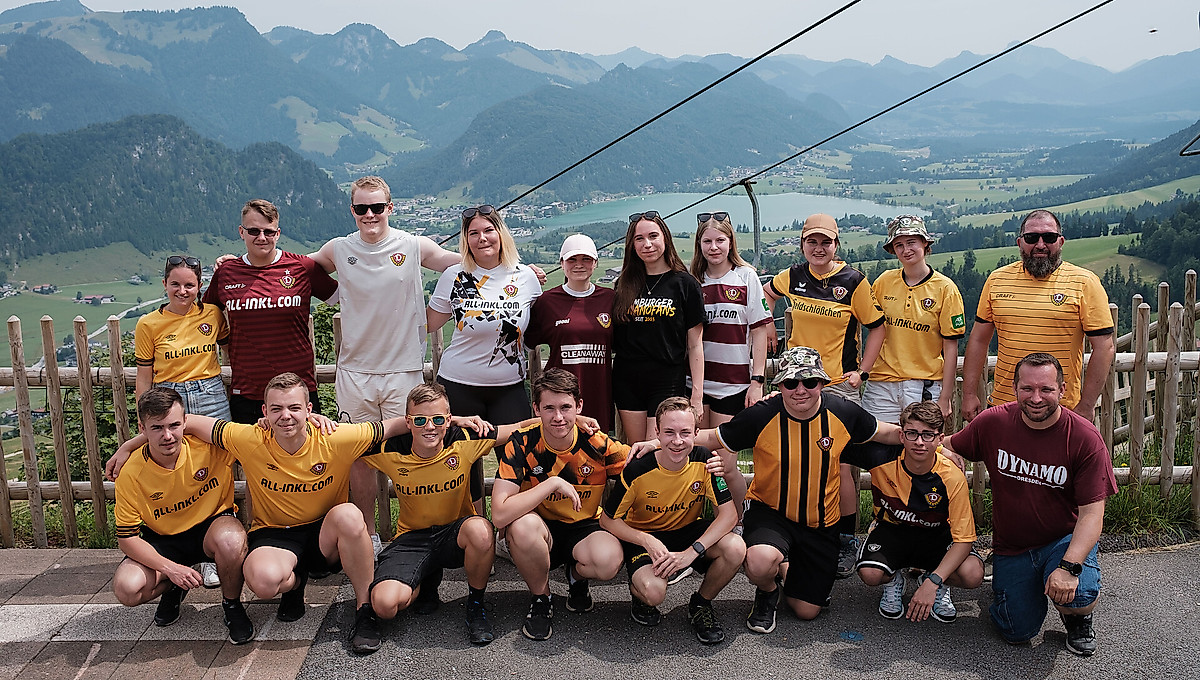 Morgens um 10 Uhr ging es für die insgesamt 16 jungen Dynamo-Fans, die aus den verschiedensten Ecken Sachsens kommen, los. Aus Kössen startete die Wanderung zur höchsten Station des Berges „Zahmer Kaiser“. Dort angekommen wurden natürlich erstmal fleißig Fotos von der tollen Aussicht geschossen, bevor es im Anschluss auf die mittlere Höhe zur Sommerrodelbahn ging.