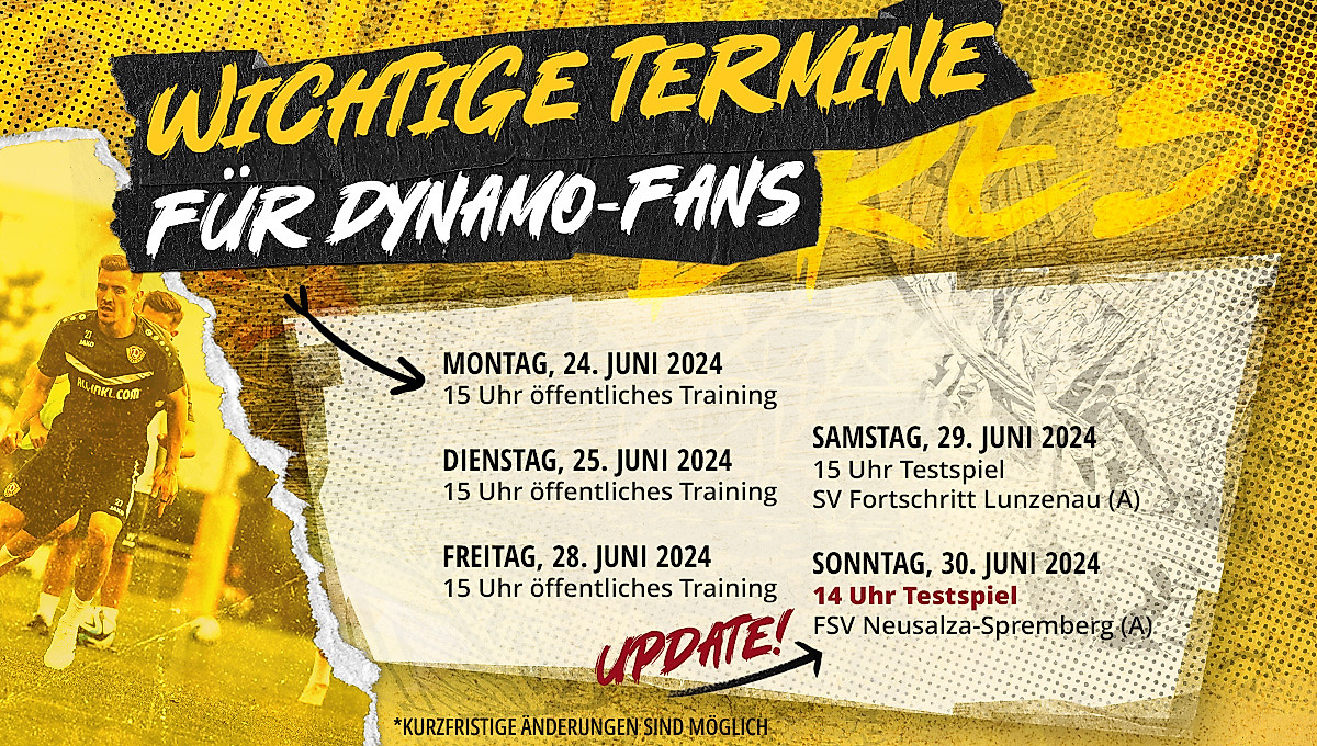 Es geht endlich wieder los! Die Drittligaprofis der Sportgemeinschaft sind zurück und starten nach dem öffentlichen Trainingsauftakt am Sonntag in die erste Vorbereitungswoche auf die neue Drittligaspielzeit 2024/25. Dazu finden insgesamt drei öffentliche Trainingseinheiten statt, zu denen alle Dynamo-Fans herzlich eingeladen sind. Am Wochenende warten dann die ersten beiden Testspiele.