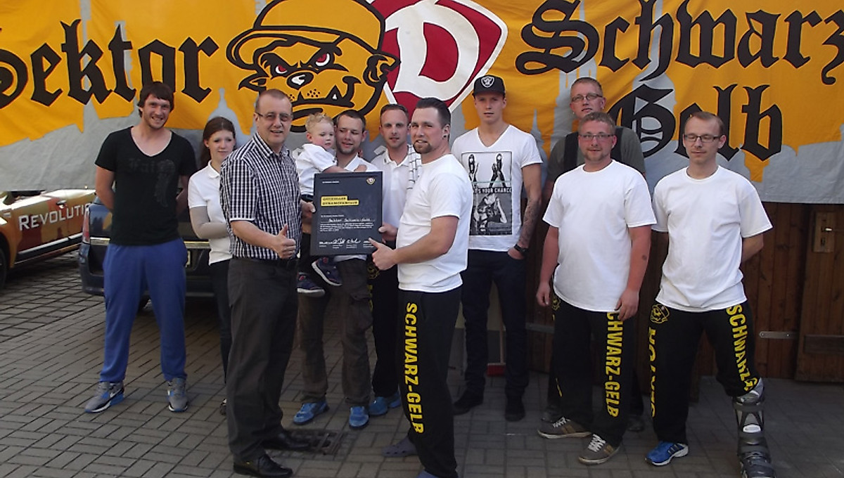 Nicht nur „Dresden ist Dynamo“ – auch Freital ist schwarz-gelb. Davon konnte sich am Donnerstagabend Dynamo-Präsident Andreas Ritter überzeugen, der mit den beiden Spielern Pavel Fort und Bjarne Thoelke dem Offiziellen Dynamo-Fanclub (ODFC) „Sektor Schwarz-Gelb“ einen Besuch abstattete. Die Freitaler erhielten aus den Händen des Vereinspräsidenten ihre Urkunde als ODFC.In lockerer Atmosphäre unterhielten sich die Fans mit den beiden Profis und Andreas Ritter über die aktuelle sportliche Situation der Dynamo-Elf und viele andere spannende Themen rund um die Sportgemeinschaft. Pavel Fort und Bjarne Thoelke hatten so manche Frage zu beantworten und versprachen zum Abschied, dass die Mannschaft alles geben wird, um die 2. Liga in Dresden zu erhalten. Höhepunkt des Abends war die Übergabe der ODFC-Urkunde durch Andreas Ritter. Damit wird der Fanclub „Sektor Schwarz-Gelb“ in die Liste der offiziellen Dynamo-Fanclubs aufgenommen. Er wurde am 1. April 2009 gegründet und hat neun Mitglieder. Diese besuchen regelmäßig die Heimspiele der SGD im K-Block und begleiten ihre Lieblingsmannschaft oft auch auswärts.