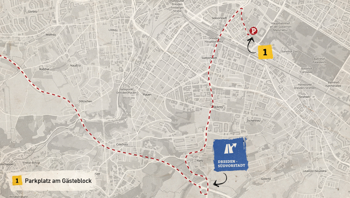 Von der A4 kommend, fahrt bitte am Dreieck Dresden auf die A17 und nutzt die Autobahnabfahrt Dresden-Südvorstadt und fahrt auf der B170 Richtung Zentrum bis zum Georgplatz. Dort biegt ihr rechts in die Bürgerwiese, fahrt die Parkstraße bis zur Ecke Blüherstraße. Ihr erreicht den Gästeparkplatz P7 und folgt dort den Anweisungen des Ordnungsdienstes und der Polizei.
