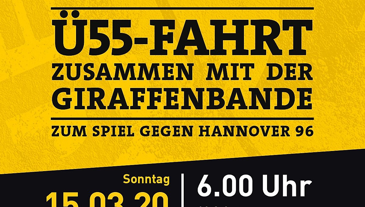 Nachdem bereits die erste gemeinsame Auswärtsfahrt zum HSV im November 2019 für alle Beteiligten ein großer Erfolg war, plant die Fanabteilung der SGD für die Partie in Hannover am 15. März die nächste Reise für Dynamo-Fans „55-plus“.Zusammen mit der Giraffenbande geht es mit dem Bus gegen 6 Uhr in Dresden los in Richtung niedersächsische Landeshauptstadt, wo die Sportgemeinschaft um 13.30 Uhr auf Bundesligaabsteiger Hannover 96 trifft.