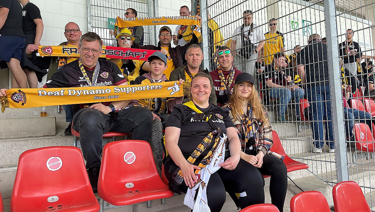 Unter den rund 2000 Dynamo-Fans im Gästeblock befanden sich am Samstag auch acht gehörlose Fans der „DEAF Dynamo Supporters“ sowie 17 Rollifahrer und eine Gruppe der Lebenshilfe Dresden e.V. Die gemeinsam organisierte Auswärtsfahrt für Menschen mit Behinderung war ein voller Erfolg und mit viel Freunde für alle Beteiligten verbunden.