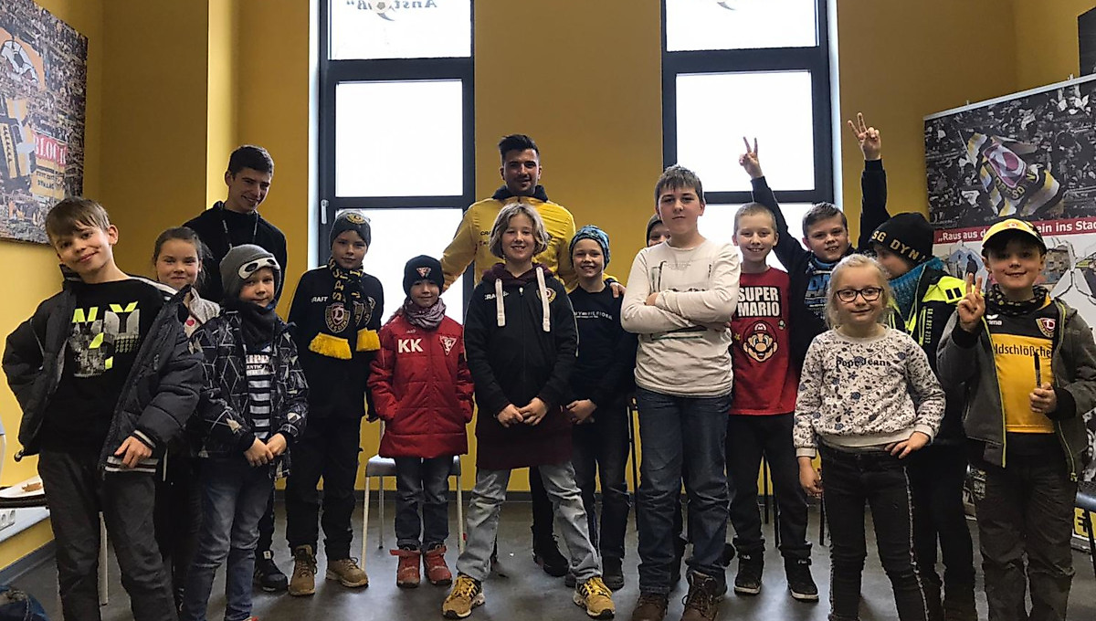 Was für ein Spieltag! Die Kinder der Giraffenbande erlebten am vergangenen Sonntag beim 2:1-Sieg der SGD gegen den FC Erzgebirge ein Sachsenderby der Extraklasse – und das lag nicht nur an den drei Punkten.{media-right-nachwuchs-adv}Bereits vor der Partie brachten sich die „Giraffis“ mit einigen Spielen und mitgebrachten Witzebüchern in Stimmung, als es für die Kids eine große Überraschung gab: Dynamos aktuell leider verletzter Offensivspieler Marco Terrazzino (Muskelfaserriss) schaute bei der Giraffenbande vorbei.