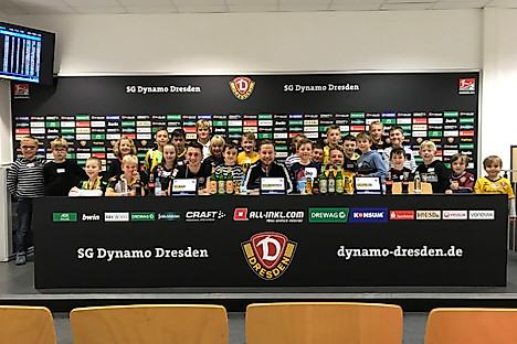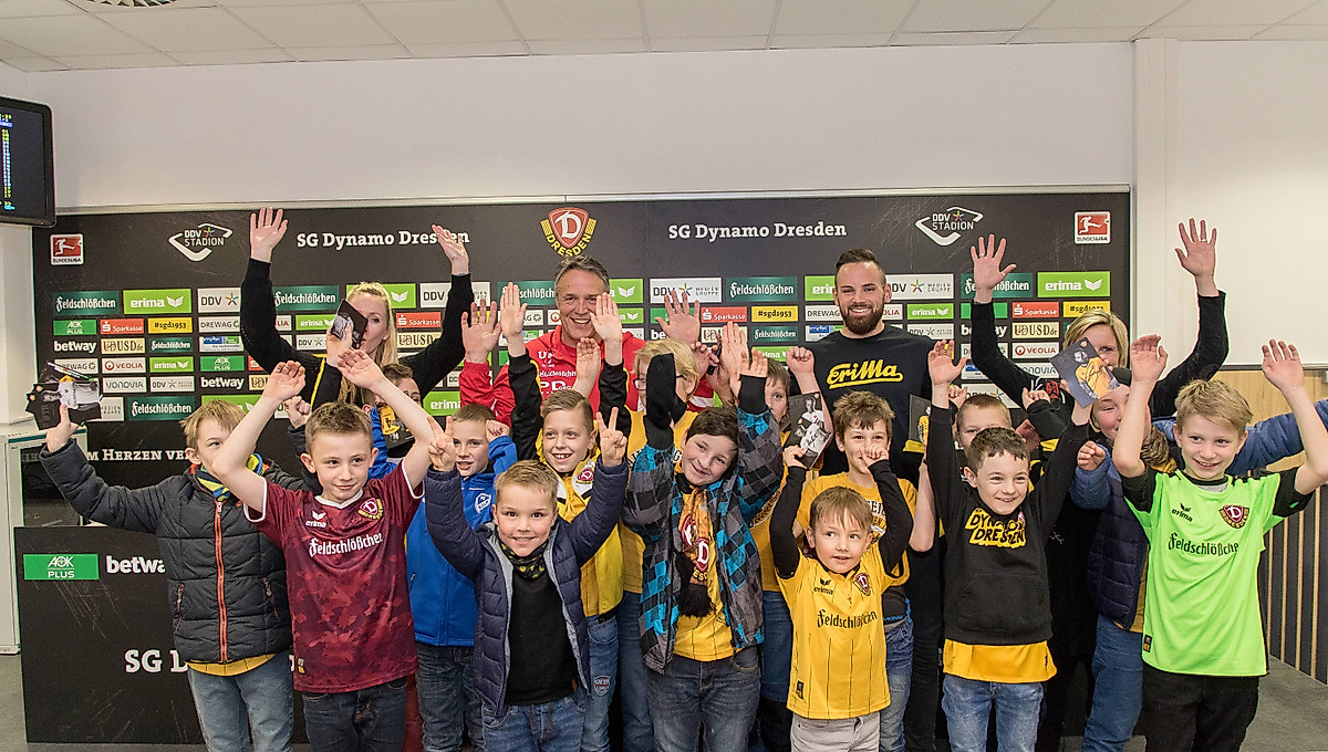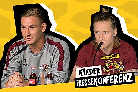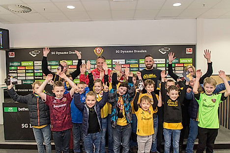 Am darauffolgenden Freitag hatten wiederum 15 Kinder die Möglichkeit, erstmalig an einer Pressekonferenz, die vor dem Spiel der SGD gegen Hannover 96 durchgeführt wurde, teilzunehmen. Im Vorfeld wurden gemeinsam Fragen vorbereitet, die die Kinder als Abschluss der PK an Chef-Trainer Uwe Neuhaus und Abwehrspieler Guiliano Modica stellen durften. Als kleines Highlight eröffnete der sechsjährige Leon die Pressekonferenz. Welche Fragen von der Giraffenbande gestellt wurden, seht ihr im Video ab Minute 14.