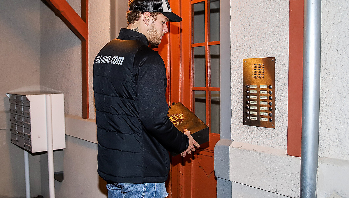 Diese Überraschung ist gelungen: Einige Fans der SGD haben ihre Halbjahreskarten nicht wie üblich von ihrem Postboten, sondern von Dynamos Innenverteidiger Kevin Ehlers höchstpersönlich zugestellt bekommen.