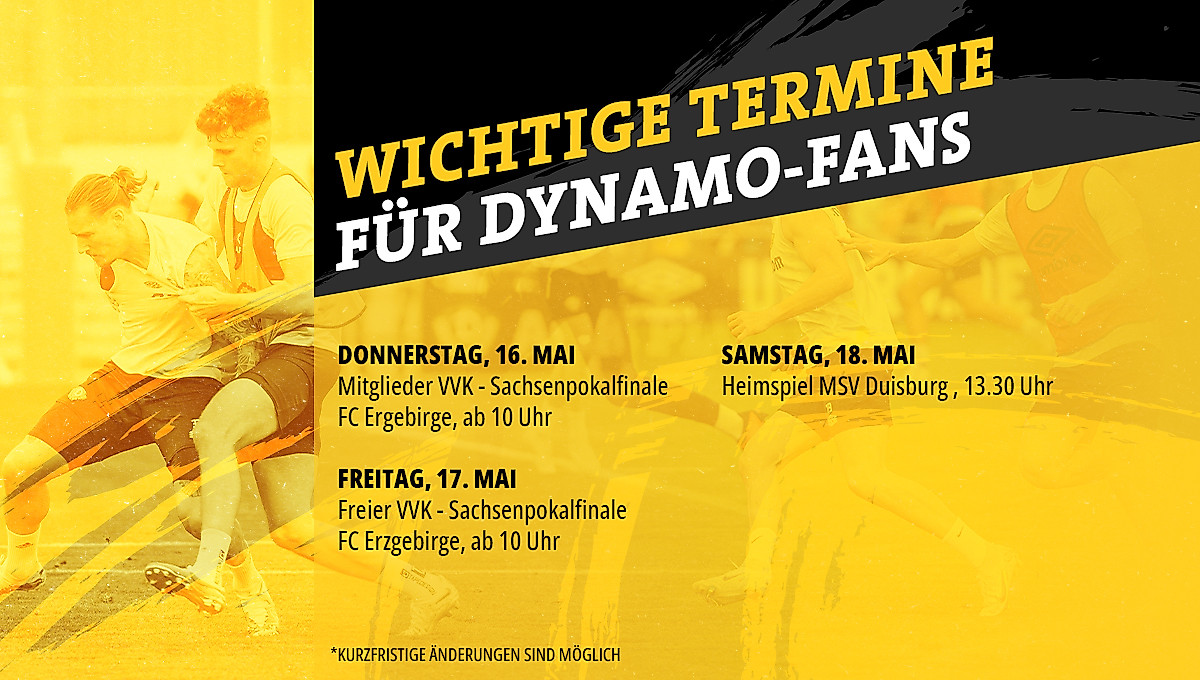 Die letzte Woche der Drittligasaison 2023/24 ist angebrochen. Am Samstag, dem 18. Mai 2024 gastieren die Zebras vom MSV Duisburg im Rudolf-Harbig-Stadion. Genau eine Woche später wird Schwarz-Gelb im Sachsenpokalfinale auf den FC Erzgebirge treffen. Dafür beginnen in dieser Woche die Vorverkäufe.