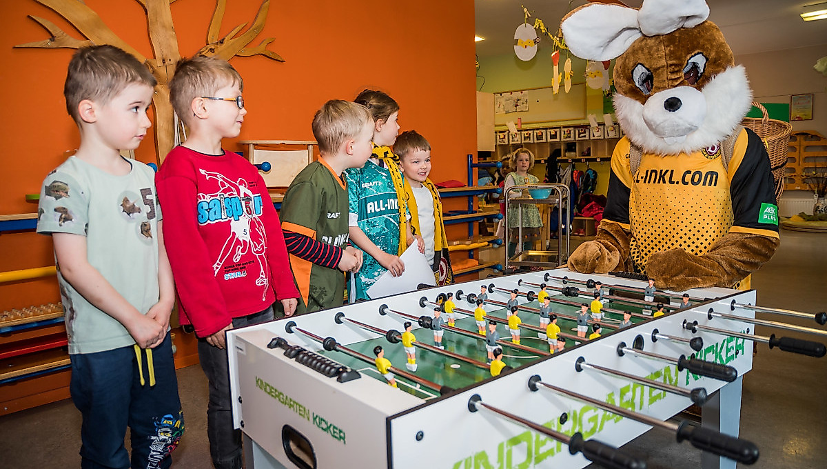 Am Dienstag hoppelte der Dynamo-Osterhase im Rahmen der Osteraktion der Giraffenbande zu drei Kindertagesstätten in Dresden, um den Kindern vor Ort mit dynamischen Geschenkepaketen eine nachträgliche freudige Überraschung zum Fest zu bereiten.{media-right-nachwuchs-adv}Dabei besuchte der Osterhase mit seinen dynamischen Helfern die Integrations-Kindertagestätte Zschertnitzer Schwalbennest, die KiTa „Gorbitzer Sonnenland“ sowie die Kindertagesstätte „Pesterwitzer Märchenland“ und sorgte beim Dynamo-Nachwuchs mit liebevoll gepackten Präsenten für leuchtende Kinderaugen.
