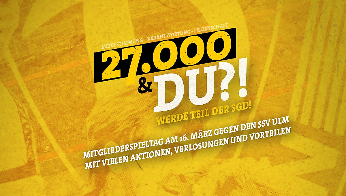 Als Mitglied der SGD ist man Teil von etwas Größerem. Teil von über 70-jähriger Tradition. Teil von einer Gemeinschaft, deren Urkraft im Zusammenhalt liegt. Teil vom Verein mit den besten Fans. Mitbestimmung ist in einer Sportgemeinschaft mit den Dimensionen von Dynamo Dresden keine Floskel, sondern ein hohes Gut. Die über 27.000 Mitglieder, die dazu die Möglichkeit haben, bilden gewissermaßen das schwarz-gelbe Herz von Dynamo. Sie zeigen Leidenschaft und sind bereit, Verantwortung für einen der größten Sportvereine Deutschlands zu übernehmen. Um sie zu würdigen, wird es beim Verfolgerduell mit dem SSV Ulm sowohl im Vorfeld der Partie als auch im Stadion selbst zahlreiche Aktionen geben.