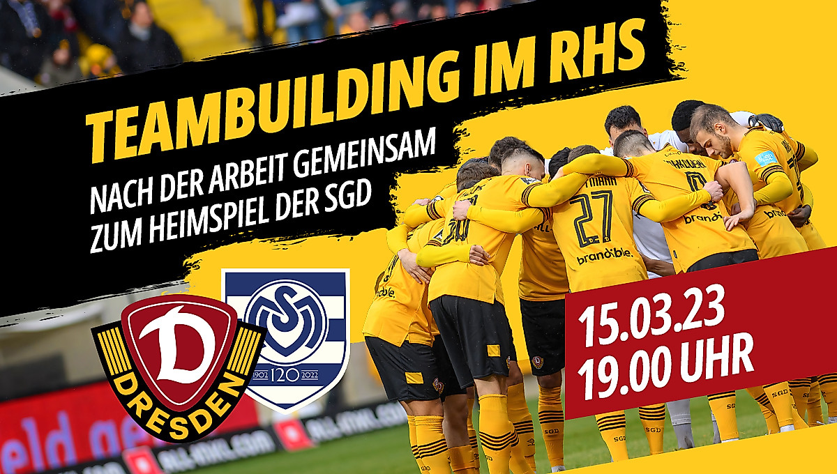 Nach Feierabend mit den Kolleginnen und Kollegen ins Rudolf-Harbig-Stadion: Die SGD plant für das Heimspiel gegen den MSV Duisburg am Mittwochabend, dem 15. März 2023 um 19 Uhr, eine besondere Aktion für Gruppen ab sieben Personen.