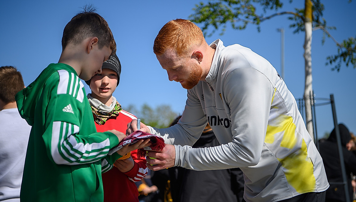 In der AOK PLUS Walter-Fritzsch-Akademie könnt Ihr die Profis beim Trainieren beobachten und hautnah erleben, wie sich Profifußballer auf das nächste Spiel vorbereiten. Neben dem Rasenplatz wird die Giraffenbande mit einem Stand vor Ort sein und eine kleine Sticker-Tauschbörse organisieren, bei der Ihr Eure doppelten Aufkleber für das REWE-Stickeralbum tauschen könnt. Sollte Euch auch die Sammelleidenschaft gepackt haben, kommt also gern vorbei.