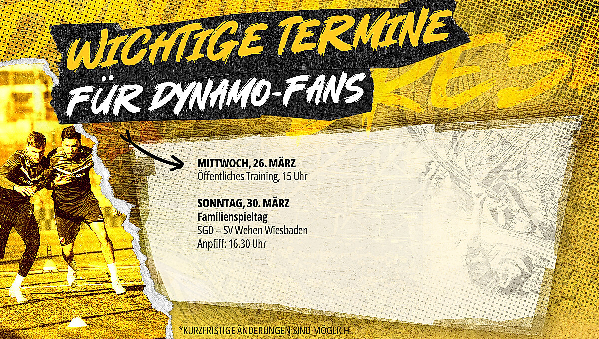 Nach der Länderspielpause geht es für die Sportgemeinschaft wieder in eine Heimspielwoche. Die Partie gegen den SV Wehen Wiesbaden steht dabei ganz im Zeichen der Familie. Zuvor gibt es noch eine öffentliche Trainingseinheit in der AOK PLUS Walter-Fritzsch-Akademie.