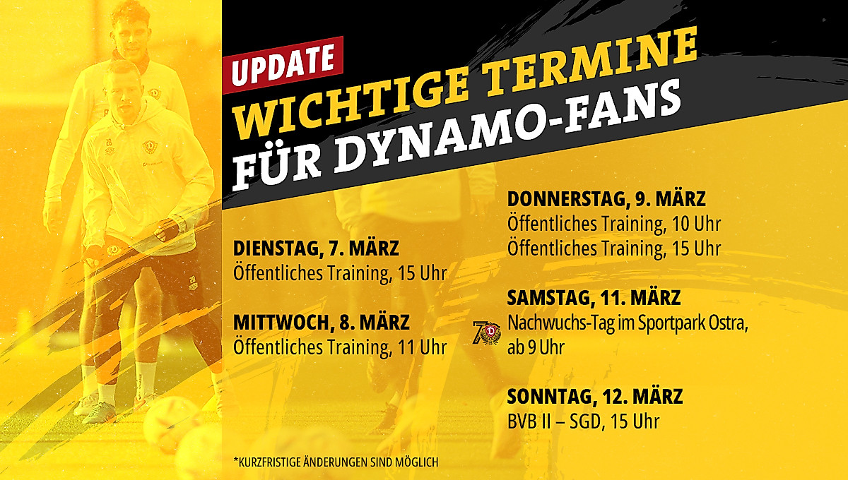 Die SGD startet mit dem Derbysieg im Rücken in die neue Woche. Nach dem 1:0-Erfolg gegen den FC Erzgebirge warten auch in den nächsten sieben Tagen wichtige Termine auf alle Schwarz-Gelben. Unter anderem stehen ein Tag der offenen Tür in der Nachwuchs Akademie und die Auswärtsreise in den Signal-Iduna-Park auf dem Plan.