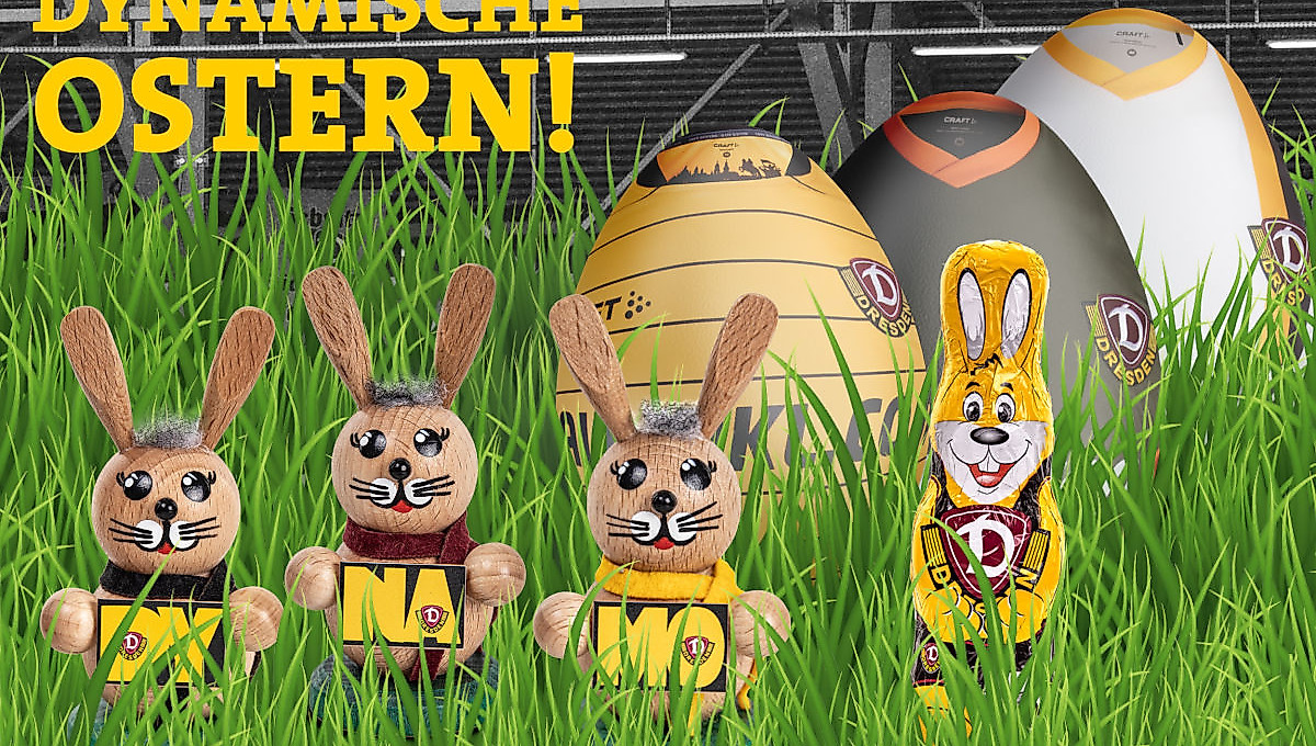 Das Osterfest steht vor der Tür und passend dazu wartet der Dynamo-Fanshop wieder mit allerlei dynamischen Besonderheiten auf.So sind das Highlight im diesjährigen Osternest sicherlich die beliebten Osterhasen „DY-NA-MO“ von Jens Held. Die alljährlichen Editionen werden vom Dynamo-Fan aus Olbernhau handgefertigt und erfreuen sich in der schwarz-gelben Anhängerschaft seit jeher großer Beliebtheit.