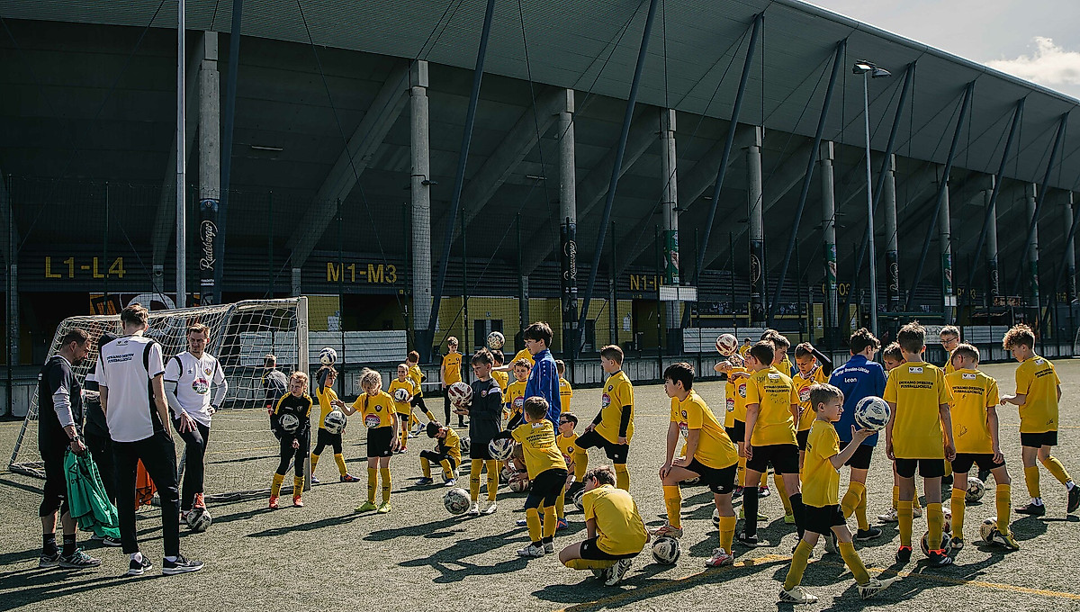 Einen Blick hinter die Kulissen der AOK PLUS Walter-Fritzsch-Akademie durften am Donnerstag, dem 4. April, auch 46 Kinder aus Gröditz und Umgebung wagen, die am dortigen Ostercamp vom 2. bis zum 5. April teilnahmen. Unter Anleitung von René Schäfer, Leiter der DYNAMO DRESDEN FUSSBALLSCHULE, durften sie dabei sogar beim öffentlichen Training zusehen und den Profis direkt begegnen.