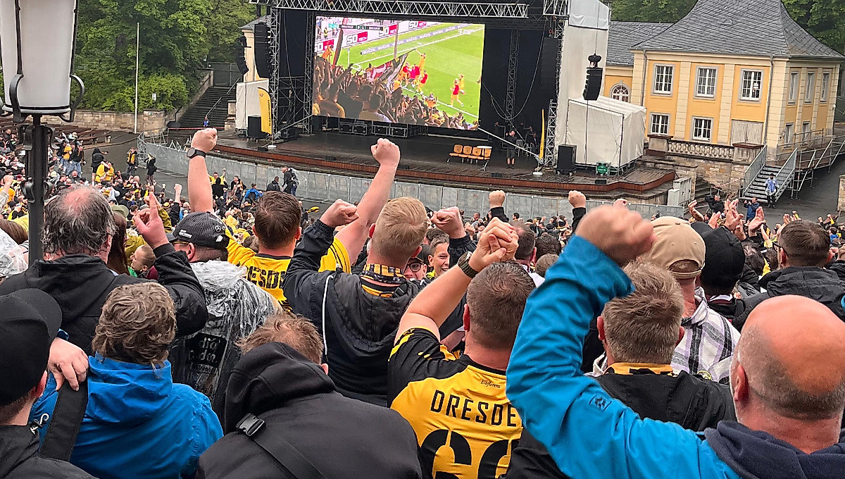 Gemeinschaftlich trotzten über 4.000 Schwarz-Gelbe vergangenen Samstag dem Regen. Gemeinschaftlich lag man sich nach dem 1:0-Führungstreffer in den Armen. Gemeinschaftlich vertröstete man sich nach dem bitteren Ausgleich in letzter Minute. Das Public Viewing in der Jungen Garde wurde so gut angenommen, dass es nun gegen Mannheim erneut stattfindet.