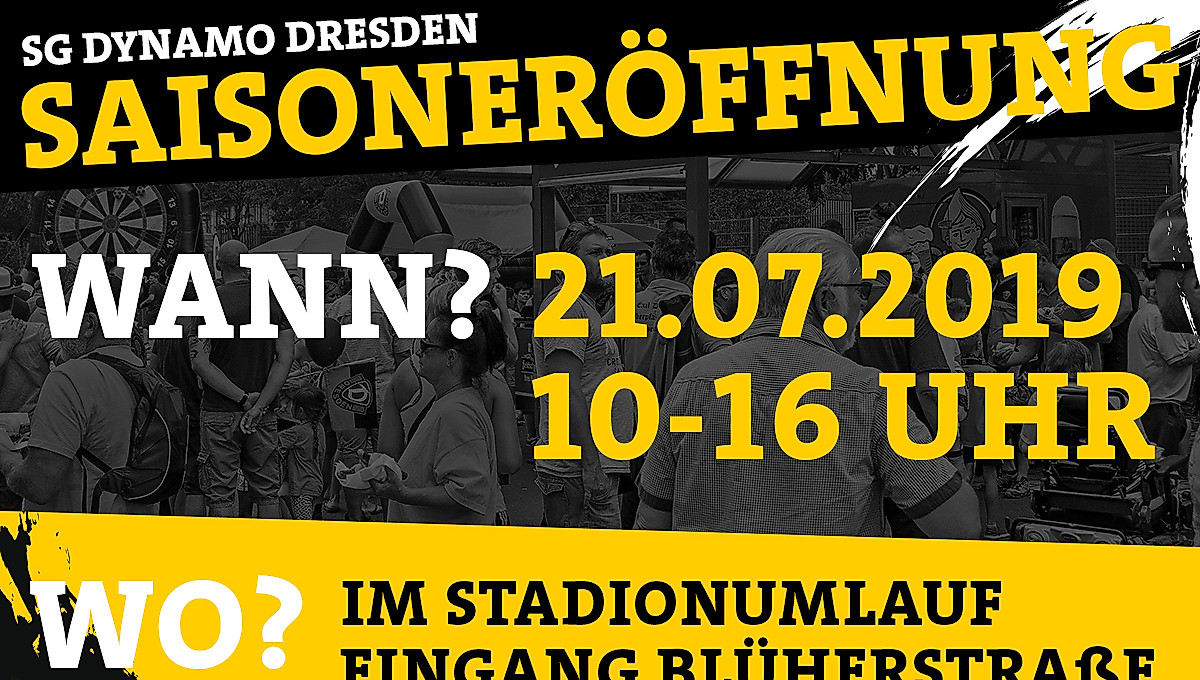 Es geht wieder los! Eine knappe Woche vor dem 1. Spieltag gegen den 1. FC Nürnberg lädt die SGD am Sonntag, dem 21. Juli, alle Fans zur gemeinsamen schwarz-gelben Saisoneröffnung 2019/20 ins Rudolf-Harbig-Stadion ein.Ab 10 Uhr gibt es im Stadionumlauf hinter der Westtribüne sowie dem K- und L-Block ein buntes Rahmenprogramm für große und kleine Dynamos.