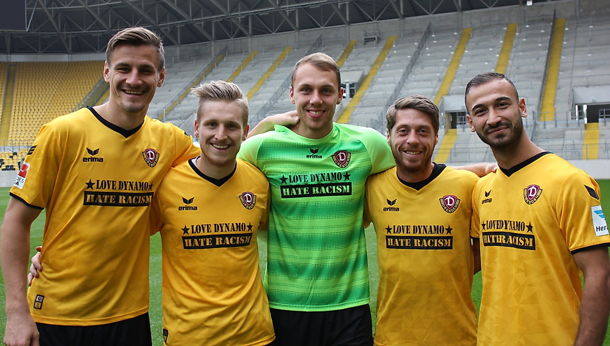 „LOVE DYNAMO – HATE RACISM“ – mit dem Slogan der antirassistischen Faninitiative 1953international auf der Brust liefen die Profis der SG Dynamo Dresden beim Heimsieg gegen den VfB Stuttgart im Rahmen der FARE-Wochen auf.Jetzt kommen fünf signierte Sondertrikots unter den Hammer.