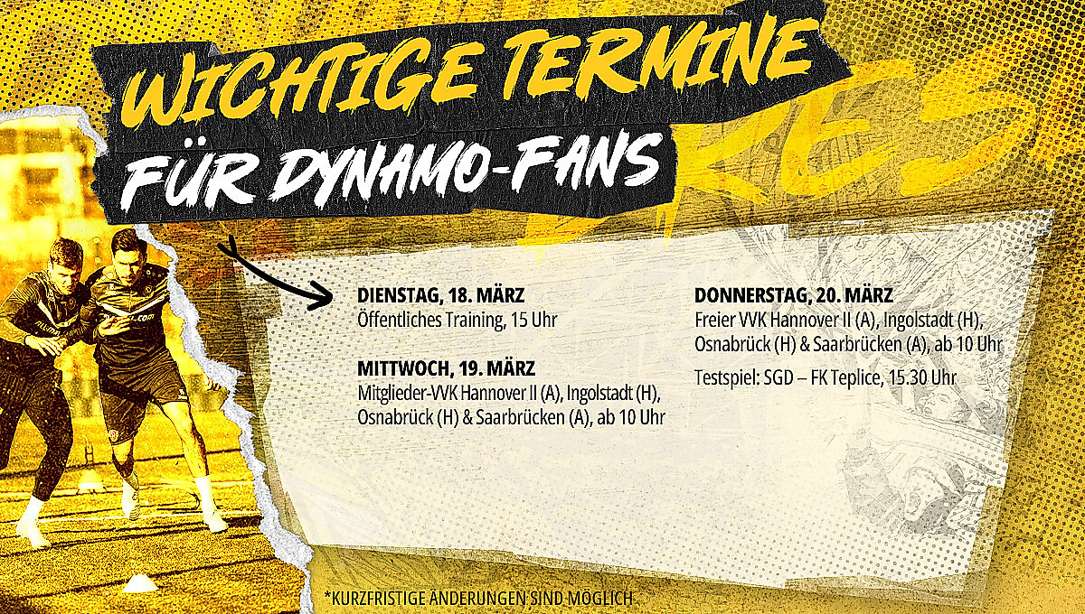 Los geht es bereits am Dienstag, dem 18. März 2025, mit einer öffentlichen Trainingseinheit in der AOK PLUS Walter-Fritzsch-Akademie. Ab 15 Uhr sind dabei alle Fans herzlich eingeladen, Spielern und Trainerteam bei der Arbeit am Messering 18 über die Schultern zu schauen.