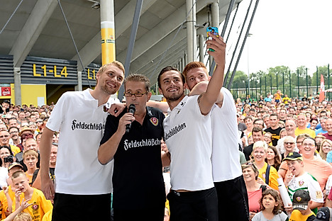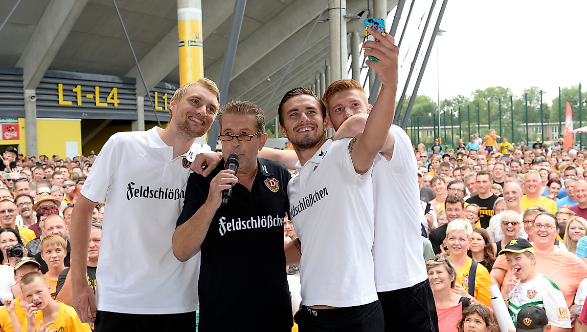 Im Rahmen der Veranstaltung eröffnete Dynamos Cheftrainer Uwe Neuhaus den Fans auch noch, dass das gemeinsame Saisonziel für 2015/16 der Aufstieg in die 2. Bundesliga ist.