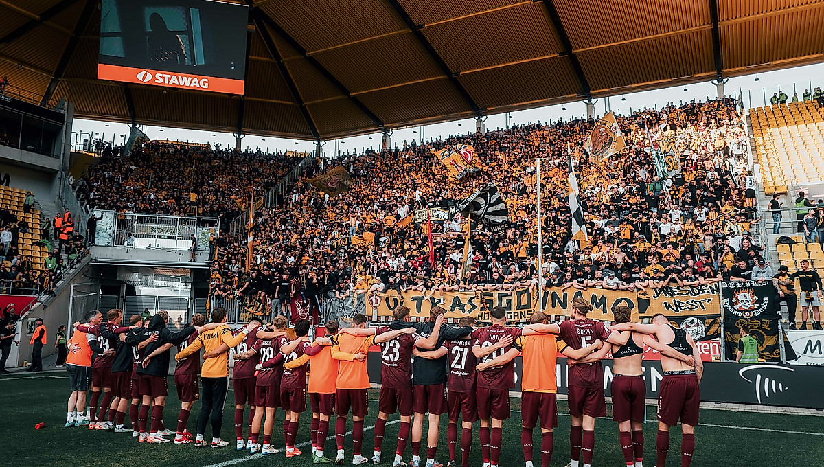 Nachdem nun die Relegationsspiele zwischen Bundesliga und 2. Bundesliga sowie 2. Bundesliga und 3. Liga durch sind, steht fest, auf wen die SGD in der kommenden Saison treffen wird. Und damit auch, wohin die dann „nur“ noch 17 Auswärtsfahrten gehen. Die weiteste von ihnen führt uns diesmal ins Saarland, wo die SV Elversberg den Aufstieg in die Bundesliga knapp verpasst hat: 629 Kilometer. Es folgen Düsseldorf (587), Kaiserslautern (577), Kiel (571), Schalke (560), Münster (559), Karlsruhe (556) und Bochum (538). Demgegenüber dürfen wir uns auf Kurztrips nach Berlin (202) oder Magdeburg (240) freuen. Auch Nürnberg (317) und Braunschweig (321) liegen beinahe noch im Dynamoland.