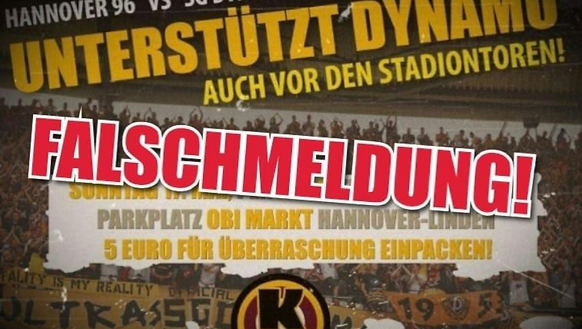 In den sozialen Netzwerken kursiert derzeit eine gefälschte Grafik, die Dynamo-Anhänger dazu aufruft, am 17. Mai zum Geisterspiel der SGD nach Hannover zu reisen. Die aktive Fanszene hat sich bereits umgehend über ihre eigenen Kanäle in den sozialen Netzwerken von dieser Meldung distanziert und wird nicht nach Hannover reisen.Die SGD schließt sich dieser Richtigstellung an und ruft alle Dynamo-Fans dazu auf, es der aktiven Fanszene gleich zu tun und sich am Spieltag nicht auf den Weg in Richtung HDI-Arena nach Hannover zu machen.