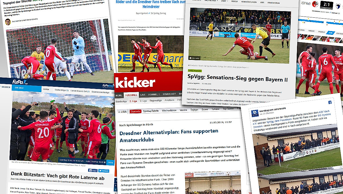 Der Sportplatz im Fürther Stadtteil Vach liegt nur rund zehn Autominuten vom Zweitliga-Stadion der Kleeblätter entfernt. So schlugen sich die 50 Dresdner schließlich auf die Seite der abstiegsbedrohten Gastgeber und feuerten die Rot-Weißen mit Polonaise und Gesängen lautstark an. Mit Erfolg: Der ASV Vach gewann das wichtige Duell um den Klassenerhalt gegen die favorisierte SpVgg Jahn Forchheim mit 2:1.