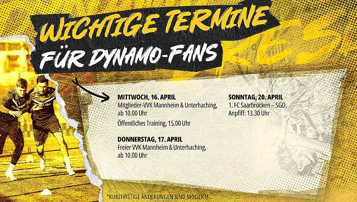 Am Ostersonntag reist die Sportgemeinschaft dann zum 1. FC Saarbrücken, wo ab 13.30 Uhr das Spitzenspiel der 3. Liga steigt und Dynamo alles dafür tun will, die Tabellenspitze zu verteidigen und den Vorsprung zum Relegationsplatz auszubauen.