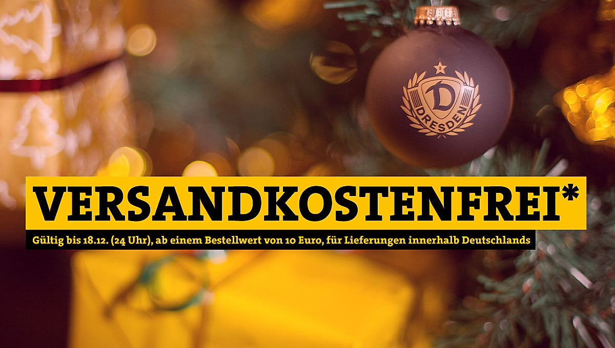 Du hast noch immer nicht alle Weihnachtsgeschenke beisammen oder brauchst noch ein paar dynamische Deko-Artikel? Dann bietet dir der Dynamo-Fanshop jetzt die richtige Gelegenheit.Bis Dienstag (18.12.), 24 Uhr, kannst du im Dynamo-Onlineshop versandkostenfrei bestellen. Das Angebot gilt ab sofort, ab einem Bestellwert von 10 Euro und nur für Lieferungen innerhalb Deutschlands.