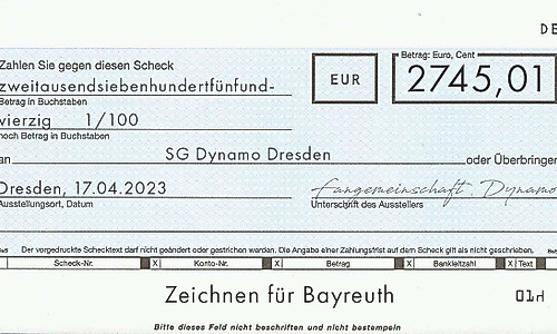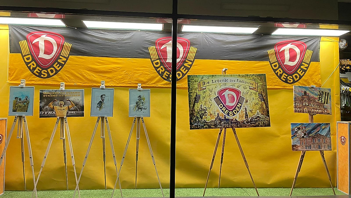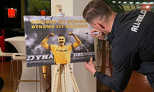 Aus den Gedankengängen entstand das Projekt „Zeichnen für Bayreuth“. Dabei haben sich drei Künstlerinnen und Künstler kreativ ausgetobt und verschiedene Motive im Zusammenhang mit den Städten Dresden und Bayreuth erschaffen, aber selbstverständlich auch von unserer geliebten Sportgemeinschaft. Bewundern konnte man die Werke erstmals zur Fanversammlung am 23. März im Rudolf-Harbig-Stadion, ehe sie danach für den Zeitraum der Versteigerung im Schaufenster des Fanshops präsentiert wurden. Die sieben Bilder brachten insgesamt eine Summe von 2.745,01 Euro ein, welche nun Dynamo zugutekommt.