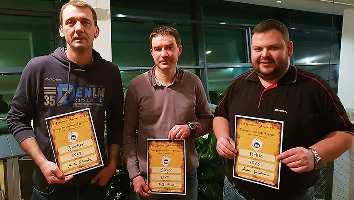 So gewann Ralf Klügel die vierte Auflage des Dynamo-Skatturniers mit 2565 Punkten hauchdünn vor Mirko Schaale, dem Zweitplatzierten, der eine Punktzahl von 2563 erreichte. Beide Teilnehmer dürfen sich über einen Stadionbesuch im VIP-Bereich bei einem Heimspiel freuen. Auf dem dritten Platz landete Andre Grundmann mit 2526 Punkten. Er gewann ein von der Mannschaft signiertes Trikot.